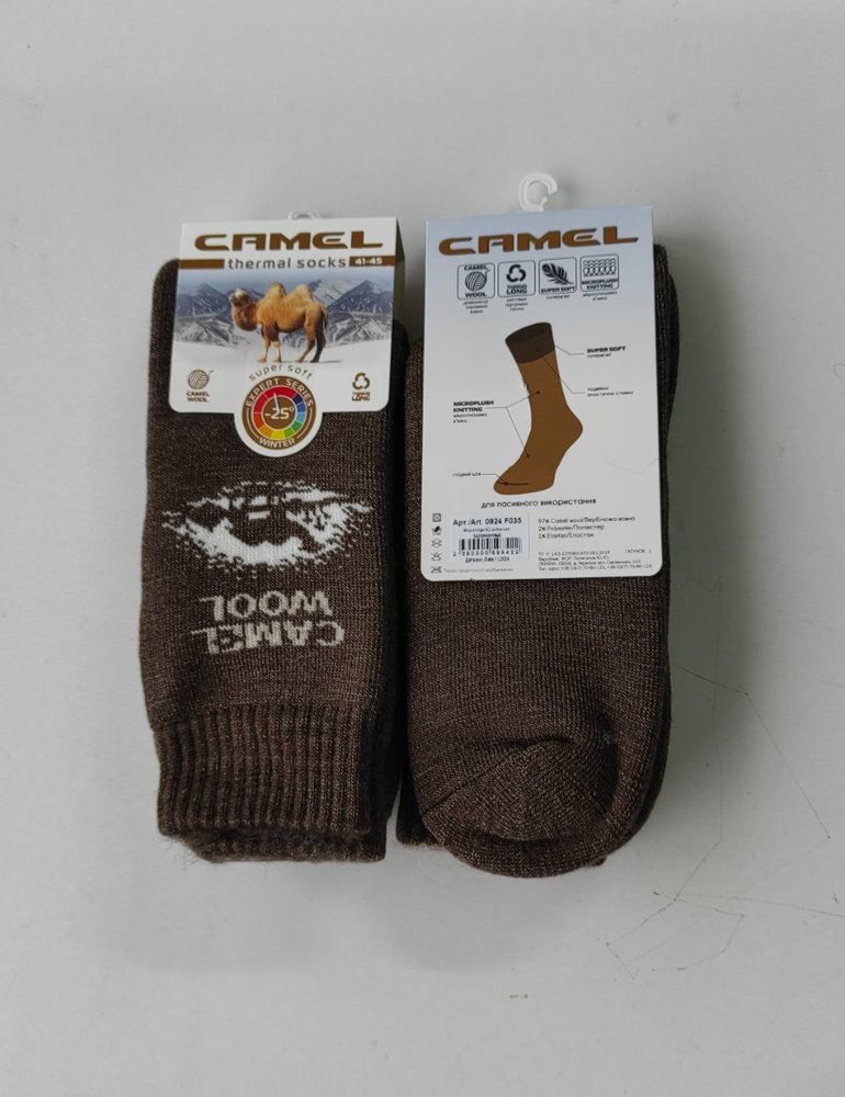 Дуже теплі високі шкарпетки з верблюжої вовни зігріють в зимову стужу. Гладкий шов. Мікроплюшева в’язка. Супер м’яка еластична стяжка. Чудовий подарунок до новорічних свят. Для жінок і чоловіків.