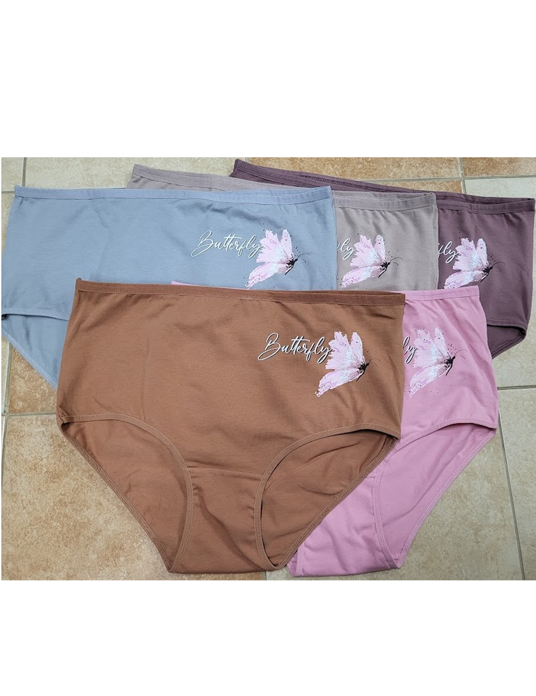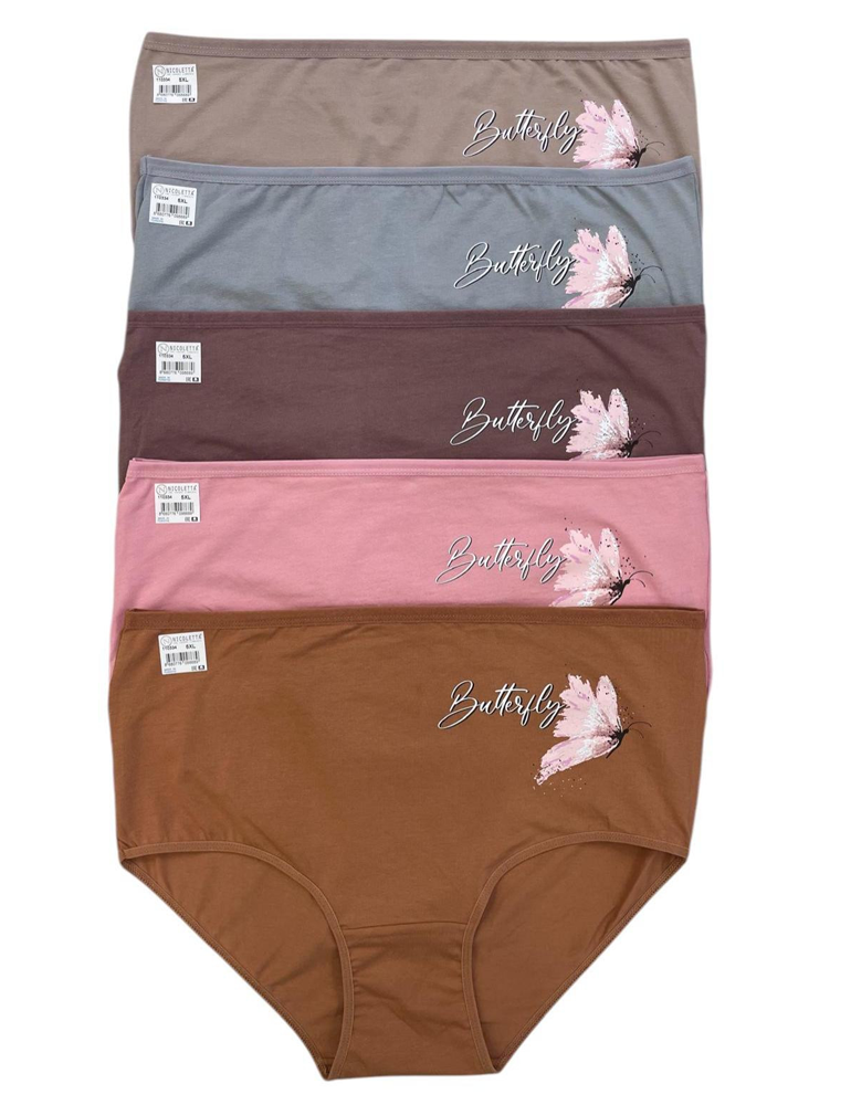 Жіночі трусики Plus Size для власниць шикарних форм. Широкий бік, мікс кольорів, чарівний метелик. Заміри (довжина гумки / висота трусів / бічний шов): 5XL (40/36/19); 6XL (42/37/19); 7XL (46/38/20).