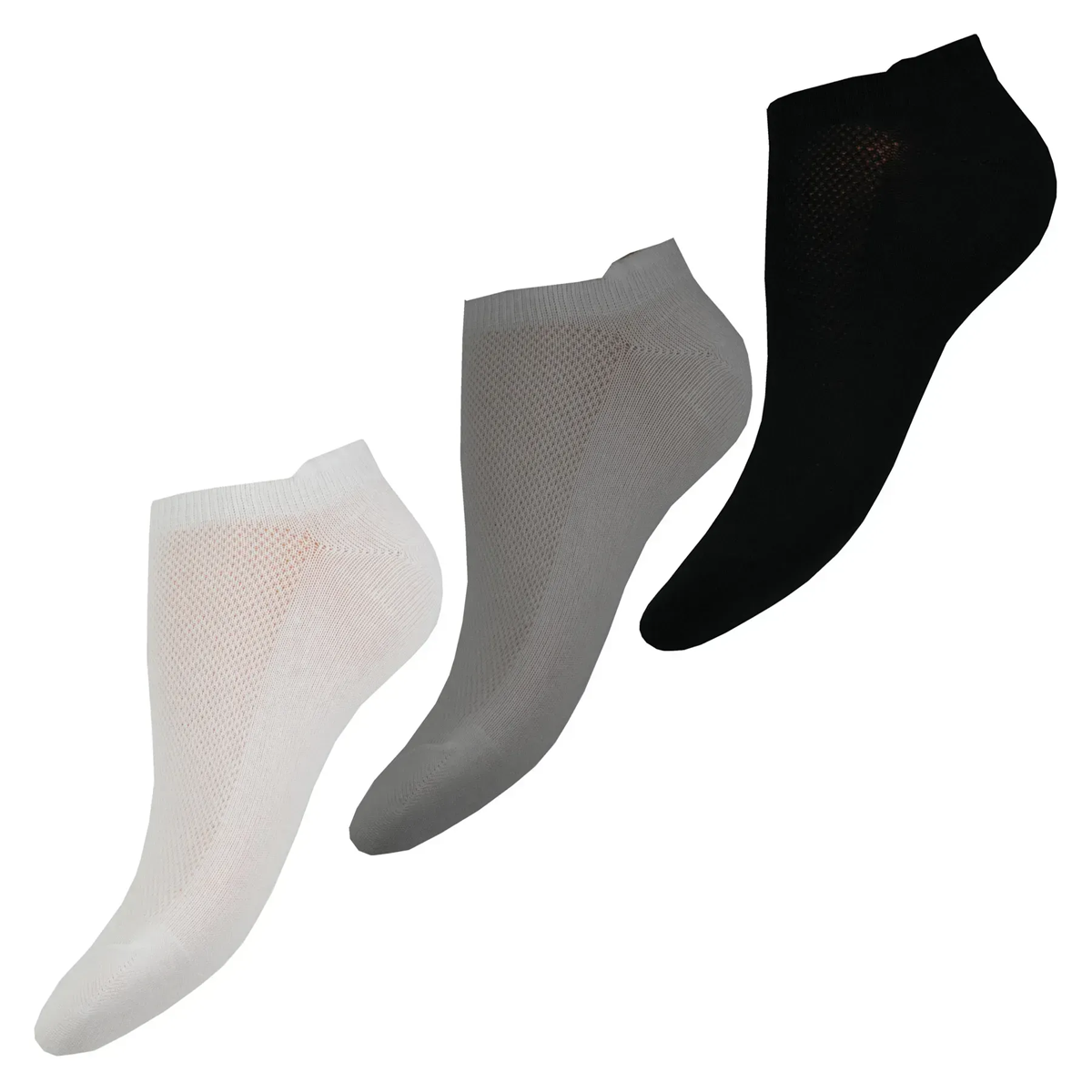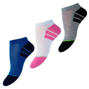 Шкарпетки жіночі короткі під спортивне та літнє взуття. Переплетення “сітка” забезпечує хороший повітрообмін у літній період. Склад забезпечує хорошу фіксацію на стопі.