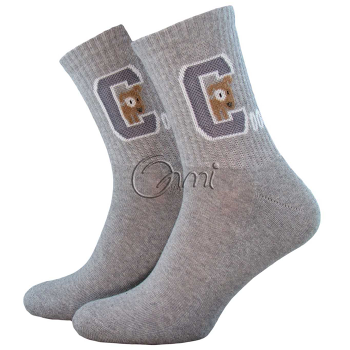 Зручні дитячі високі спортивні шкарпетки з надійно-охоплюючим паголенком, з плюшевою стопою та малюнком. Виготовлені з бавовняної пряжі.